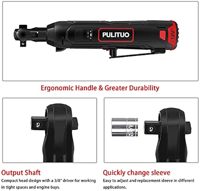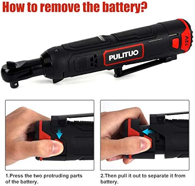 【High Performance】PULITUO cordless ratchet wrench equipped with 12V motor, Max torque of 50 N.m (37 ft-lbs) 300 RPM, It can remove or install bolts (or nuts) easily. High performance of torque makes it perfect for construction, auto repair, and even home repair work.