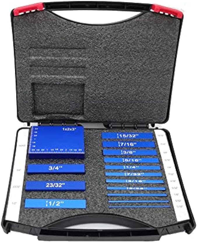 【Accurate Measurement】: The setup blocks are all 3 inches long, including 1/16", 3/32", 1/8 ",5/32" ,3/16" ,7/32" ,1/4" ,5/16" ,3/8" ,7/16", 15/32", 1/2", 23/32", 3/4", 1" square.