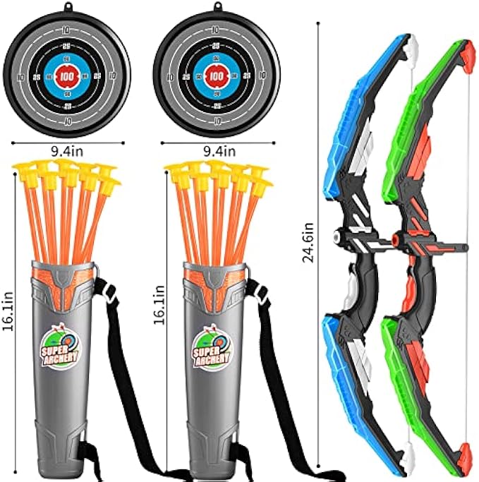 2 Pack Set Bow and Arrow Archery Toy Set for Kids, LED Light Up Archery Set with 2 Bow 20 Suction Cup Arrows 2 Target & 2 Quiver, Outdoor Toys Archery Set for Kids Boys & Girls Ages 3 -12 Years Old