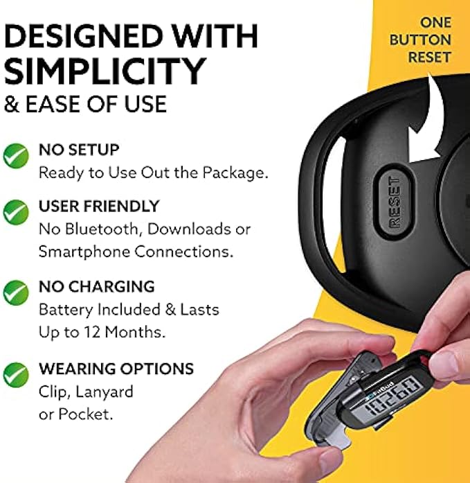 SIMPLE & EASY TO USE - 3D Pedometer for Steps Only. It is ready to use straight out of the package. The simple feature and design makes it user friendly for men, women, kids & the elderly who want to track their steps and stay motivated towards achieving their fitness goal. It´s the simplest pedometer to start with, if you don't want complicated set ups.