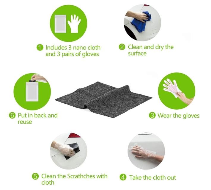 • 【REUSABLE】: Nano Sparkle Cloth for Car Scratches polishes and restores color in minutes. When finished, simply fold the Nano Cloth, place it back into the package, and tighten the seal.