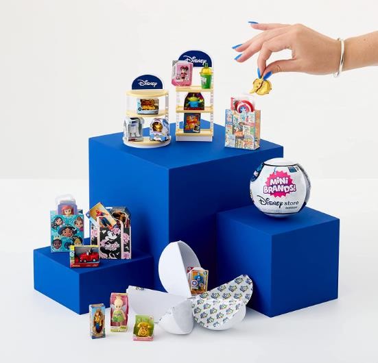 Introducing new REAL miniature Disney Toy Store collectables There are over 70 miniatures of your favourite Disney brands to collect from Marvel, Pixar, Lucasfilm, Mickey & Friends and Disney Princesses. Find minis of your favourite characters like Spiderman, Darth Vader, Elsa from Frozen, Mickey Mouse and friends and Buzz Lightyear. Collect them all including special accessories to recreate your own Disney store! What 5 surprises will you unbox?