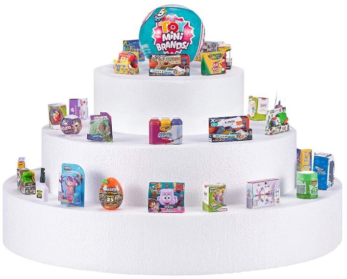 Unwrap peel and reveal real miniature collectibles with 5 Surprise Mini brands! What 5 surprises will you unbox? There are over 70 miniatures of your favorite brands to collect including rare metallic and glow in the dark minis and Super rare golden minis too! Collect them all to create your own mini shopping world!
