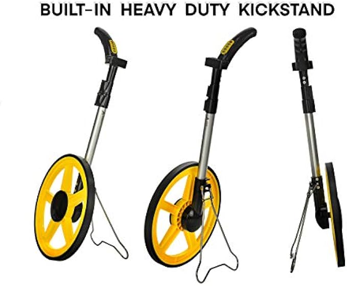 HIGH-QUALITY, DURABLE CONSTRUCTION. Measuring 12” in diameter with a 3' circumference, this unit boasts a plastic molded wheel for long-lasting strength and use. It features a telescoping handle that is extendable up to 44 inches and collapses to 27 inches for easy carrying and storage in the included soft carrying case. The kickstand is sturdy and all buttons are water-proof and dust proof, ensuring that this unit is built to last.