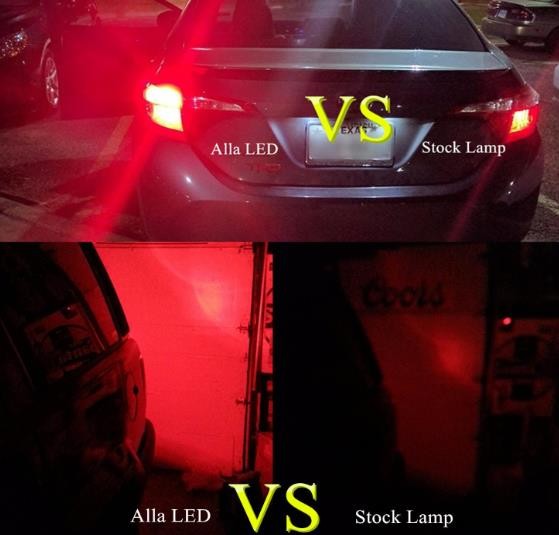 Alla Lighting 3157 3057 LED Red Bulb vs OEM Stock Brake Lamps