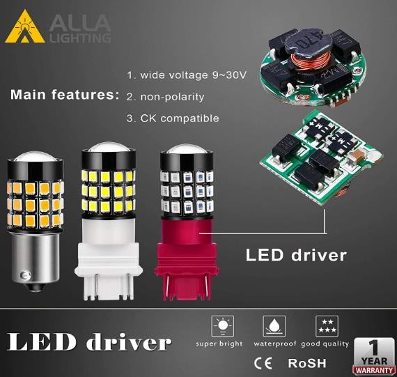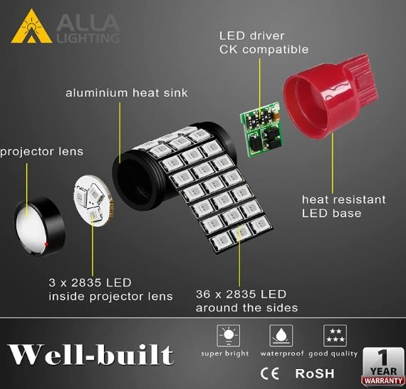 • Alla Lighting 2835 39-SMD T25 wedge 3156 3157 LED bulb makes your car more easily noticed while stopping by switching to braking mode,and also makes your car look much more luxury than stock lamp, more attractive.