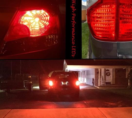 This listing features one pair (2 pieces) super bright 3157/3156 pure red LED bulbs equipped with high power 2835-SMD LEDs, each 3157 dual filament LED bulb is about 1000 lumens, especially designed for replacing stock dim halogen or incandescent rear brake stop light, tail light, rear turn signal light, rear side marker light, center high-mounted stop light bulb, etc.