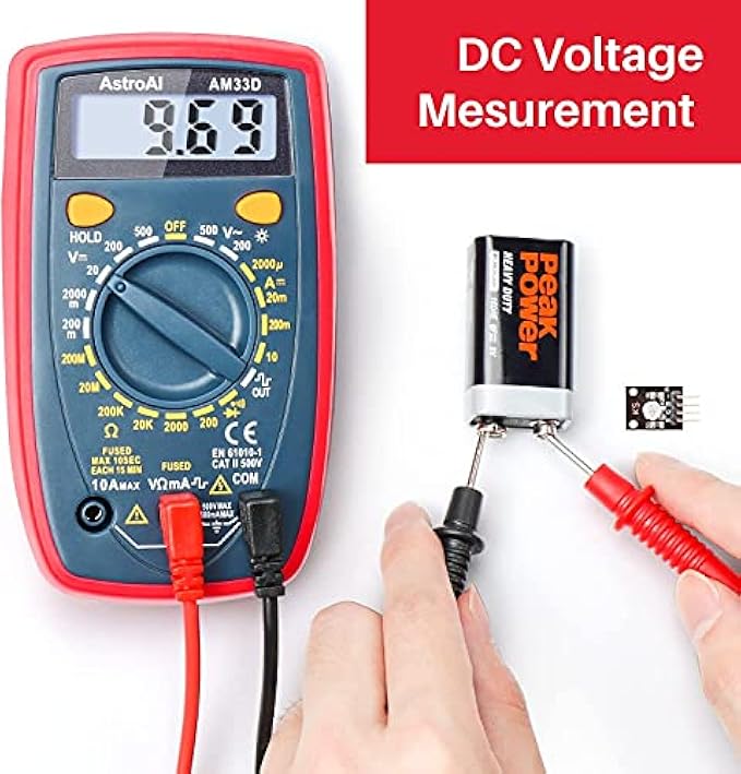 VERSATILE DIGITAL MULTIMETER - Accurately measures AC/DC Voltage, DC Current, Resistance, and Diode. This Multimeter is a really useful tool for solving industrial and household electrical issues. Suitable for Household Outlets, Fuses, Batteries (including Vehicles), Automotive Circuit Troubleshooting, Charging System, Testing electronics in Cars etc.