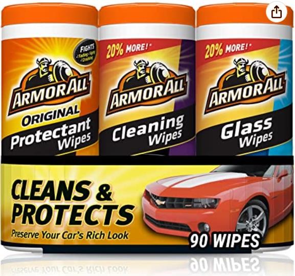 Detail like a pro with Armor All Protectant, Glass and Car Cleaning Wipes. This multi-pack has 3 proven Armor All wipes for fast detailing. Use the glass wipes as car window cleaner for your windshield. The car protectant wipes revitalize vinyl, plastic and rubber and provide a vinyl protectant to fight cracking and fading. Use the cleaning wipes on surfaces like leather, fabric and carpets. These auto interior cleaner formulas easily clean your car. The auto wipes don't leave residue, and are lint-free for a spotless clean. With car cleaning supplies from Armor All, you get trusted results.
