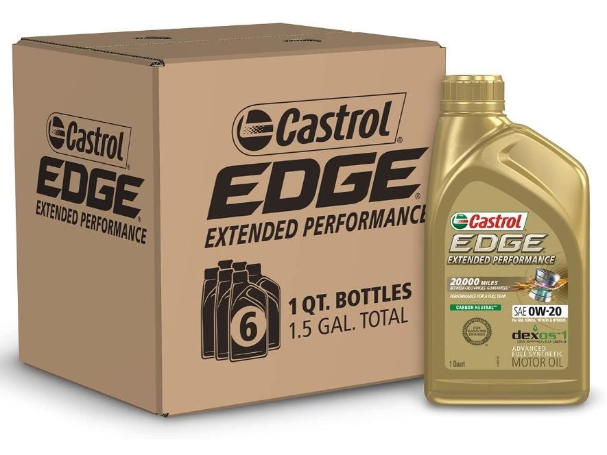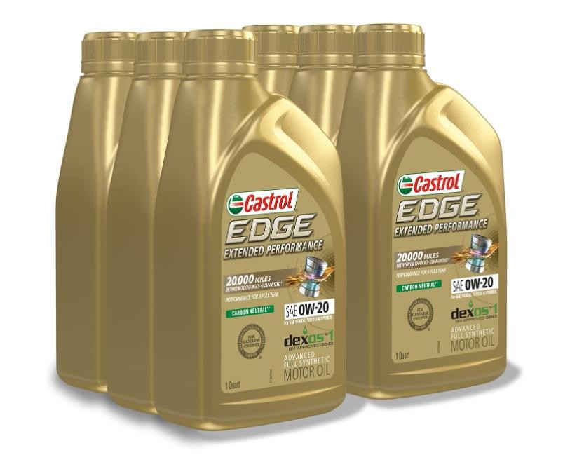Castrol 152D7D Edge Extended Performance 0W-20 Advanced Full Synthetic Motor Oil, 1 Quart, 6 Pack