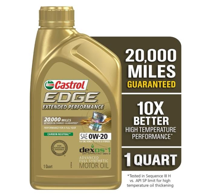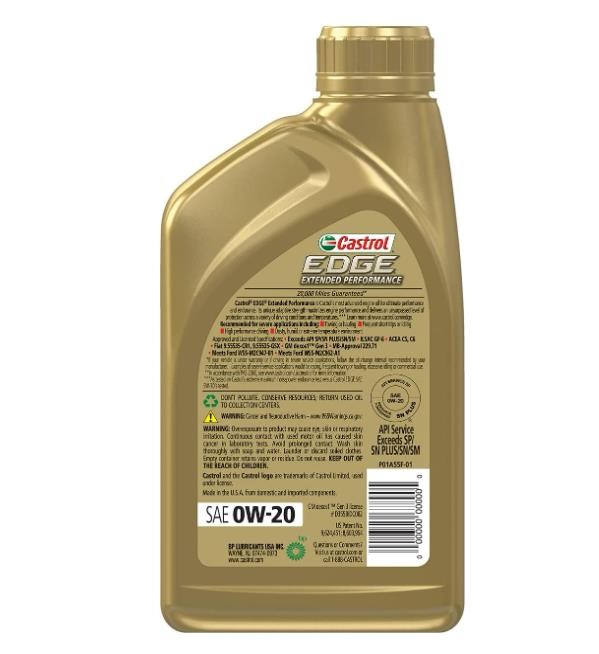 Engine oils need to be able to consistently respond to changing environments in your engine. During every moment of the drive, your engine oil needs to be able to react to the needs of different metal-to-metal contact points in your engine each with different demands, pressures and temperatures. Castrol EDGE Extended Performance – Castrol’s premium full synthetic oil- is uniquely engineered with fluid titanium technology provides unsurpassed protection for critical engine parts, ensuring optimal performance- with strength to enable an extended drain interval of up to 20, 000 miles*. * Extended service is not recommended in severe service applications such as racing, frequent towing or hauling, commercial use, extremely dirty/dusty conditions or excessive idling.