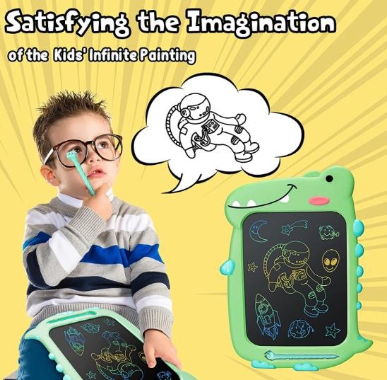 - Upgrade Vivid Screen - Eye Protection: Digital LCD drawing board for kids adopts the newest LCD pressure-sensitive tech, providing vivid rainbow colors without glare and blue light. With 10 inches colorful screen, LCD writing tablet offers enough space and is easy for kids to write, draw, doodle and graffiti. Children can't put it down and exercise concentration. Ideal gift toys to give kids a break from electronics! Great learning toys for girls boys
