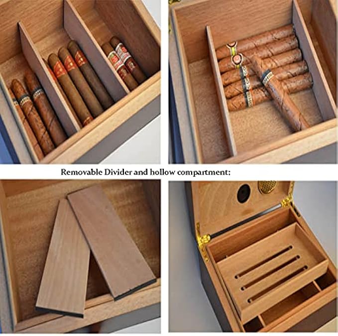 • Large Capacity:The size of humidor box is 11.2*9.7*5.6 inches. Acanyewit Humidor cigar box provides a large capacity ,which can hold 30-85 cigars. The metal hinge with repeated folding can easily reach 90 °.