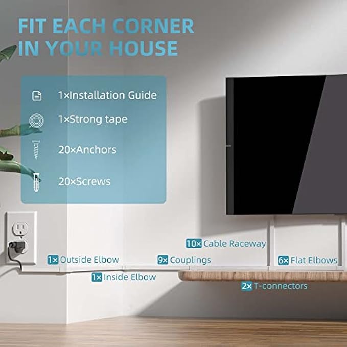 Cuttable and Paintable: Our wall cord cover with a simplistic appearance to blend in seamlessly with your home decor. You can paint the cable channel the same color as your walls and easily cut the cord hider to any desired length. Decorate your living room with the Delamu cord hider wall mounted tv
