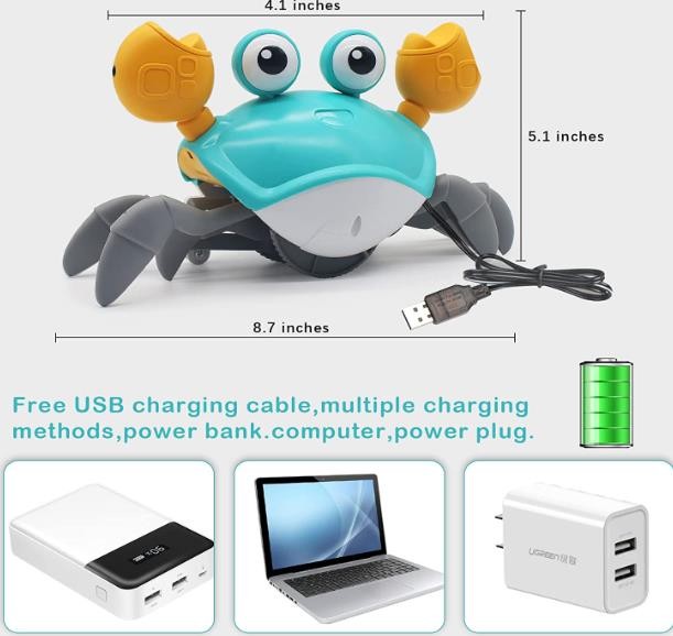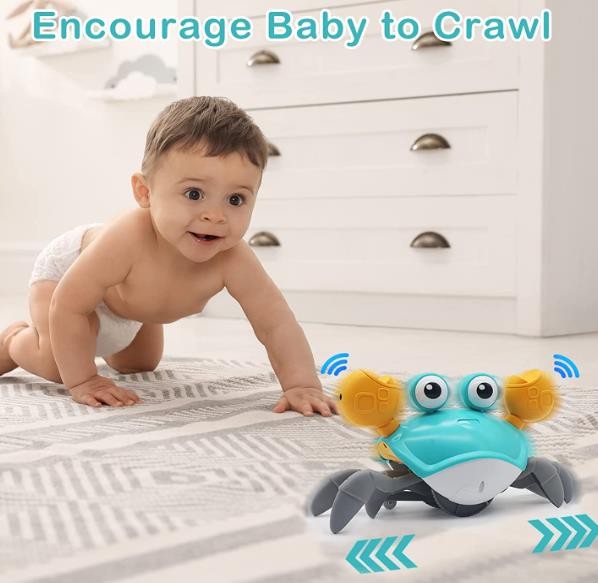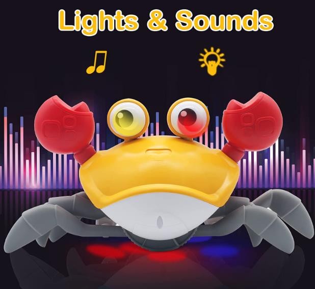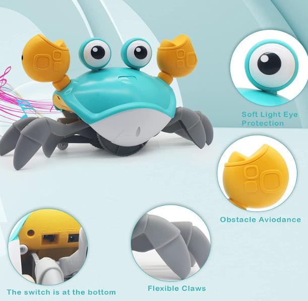 • 【Musical Crab Toy】 Super value for crawling crab baby toy &sensor obstacles avoidance function,when the crawling crab baby toy encounters an obstacle during moving, the crawling toys will move in the opposite direction in time. The light and music makes the walking crab baby toy very attractive to kids.Note: Do not use this toy in water or humid environments.
