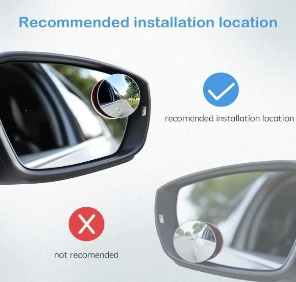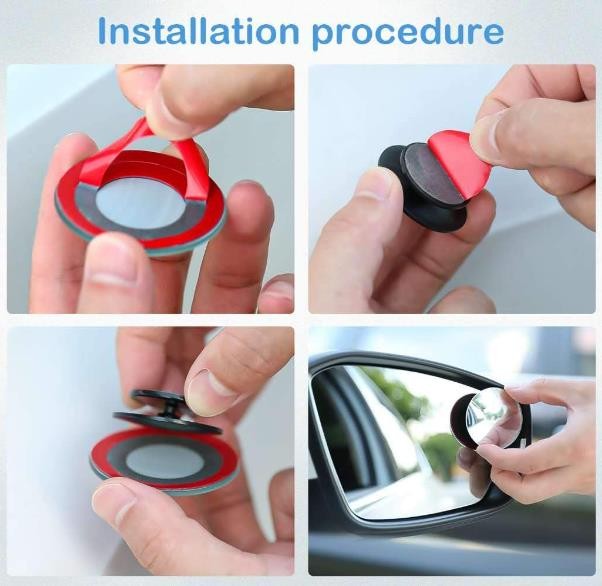 • 【Easy to Install】 Clean the side mirror of the car with a cloth and a small amount of alcohol or other cleaning supplies, then attach the blind spot mirror to the mounting bracket and install it on the side rear-view mirror.