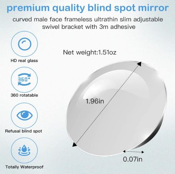 • 【More Safety】 Blind spot mirror can increase vision, reduce blind spots, and ensure safe driving during driving and lane change.