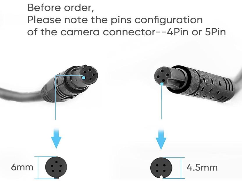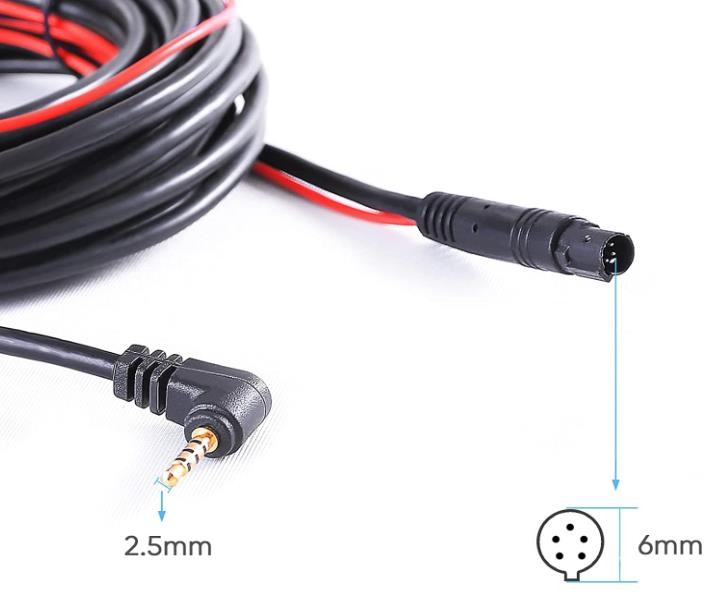 This is 5 pin to 2.5mm male cable for dash cam rearview camera, the length 23ft, suitable for the rear camera with the 5 pin connector. This 5 pin cable for rear view camera is a good replacement of your original car camera cable, or this longer cord will help you install the backup camera on your pickup truck, RV, SUV, trailer...