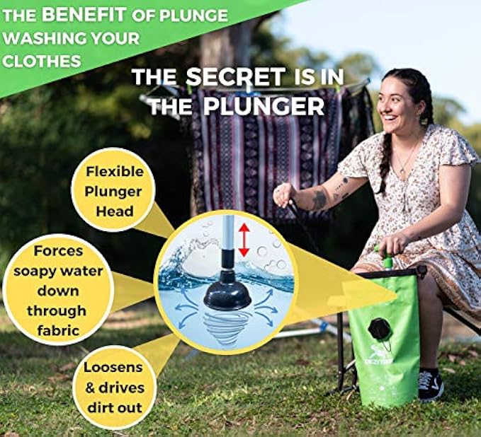 A WASHING MACHINE FOR CAMPING AND BEYOND: Our plunger wash bag is everything you need to wash confidently on the go. It is perfect for caravans, rv's, cruise ship or backpacking holidays, hotel and hostel stays. Not just for travel, use as your college dormitory or apartment washing machine for hand washing lingerie, cloth diapers or face masks. It also doubles as a laundry hamper between washes