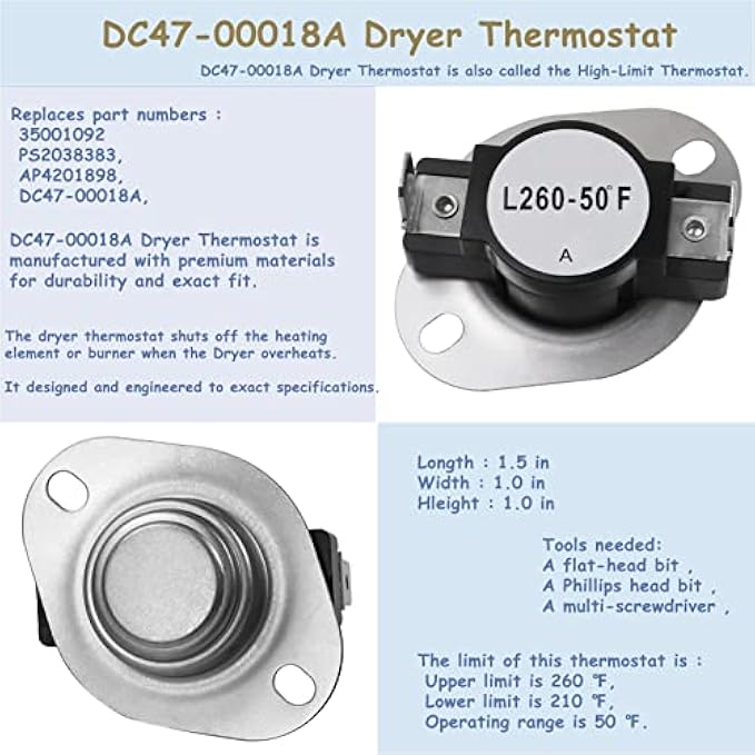 ❤HIGH QUALITY: The DC47-00019A heating element Made of high-quality materials (metal or stainless steel). Upgraded. The length of the heating wire is longer than that of other common dryer replacement parts. It increases the resistance by 25%. Long heat-resistant life. It saves you the cost of repair personnel. Reduce the number of parts you replace The right combination for you!