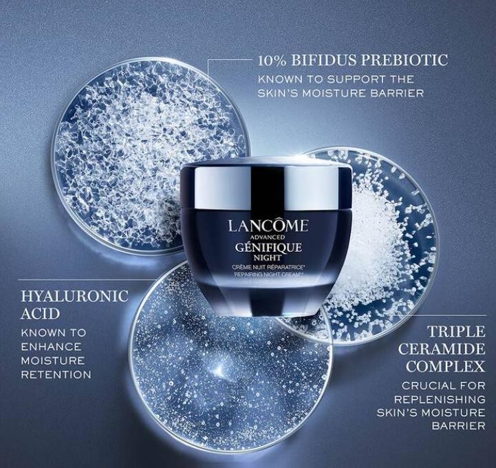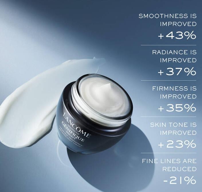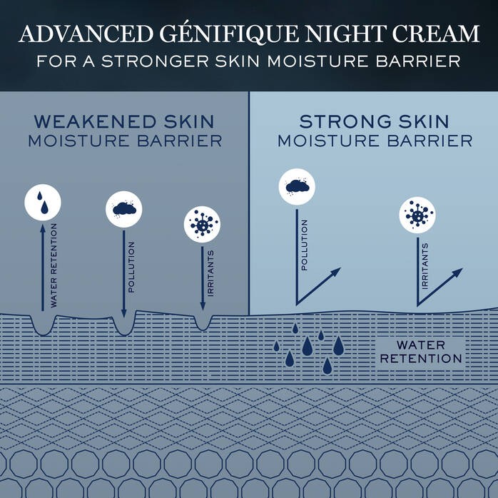 Advanced Génifique Repairing Night Cream* works to restore hydration and plumpness while you sleep to wake up with skin looking radiant and well-rested. In a clinical study, 10 out of 10 of women showed improved radiance***. Over time, this anti-aging cream reduces the appearance of fine lines and wrinkles, to leave skin looking youthful and feeling healthy. Pair with Advanced Génifique Serum to strengthen the skin barrier and follow with the night cream to help repair the skin barrier overnight.