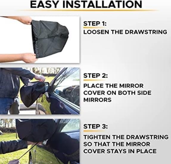 Effortless Installation: Installation is very simple, just slide the snow cover directly onto your car side mirror and tighten the drawstring. Protect your side mirror and always keep your vision clear.