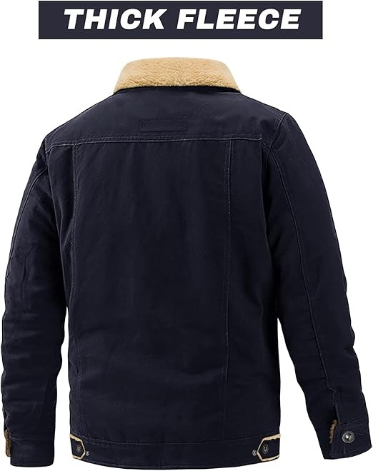 EKLENTSON Men's Winter Jacket Thick Thermal Cotton Warm Fleece Lined Coat Trucker Lapel Work Cargo Jackets for Men