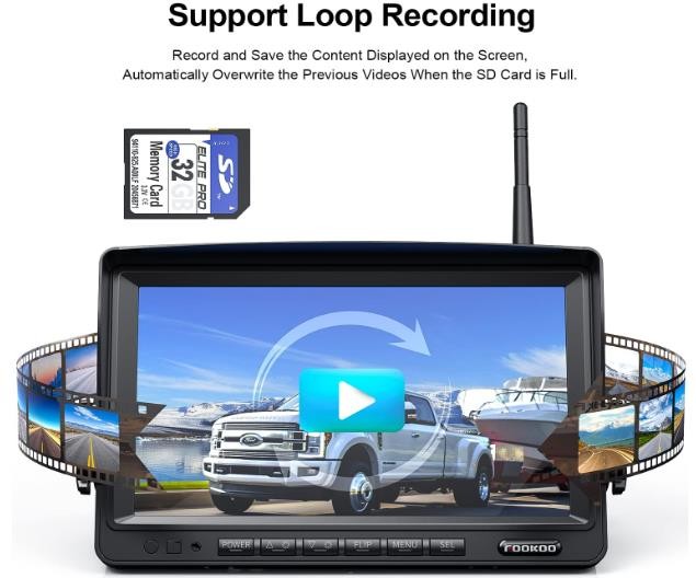 Fookoo 7" Wireless Backup Camera System