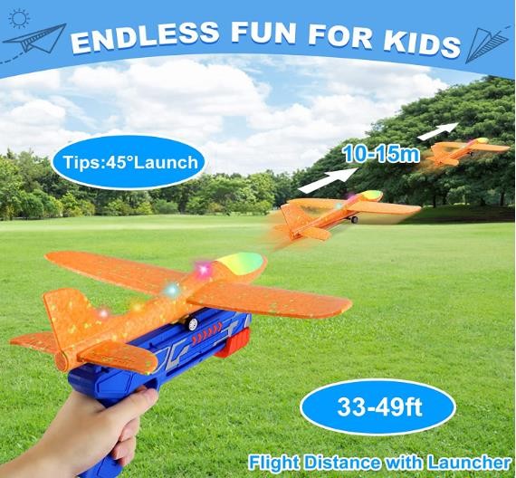 3 Pack Airplane Toys - Our glider boy toy is equipped with 3 different colors of green, orange, and blue gliding foam planes, and 1 plane launcher. Throwing planes by hand or flying them with launcher, kids can cultivate their hand-eye coordination, observation, and sense of direction.