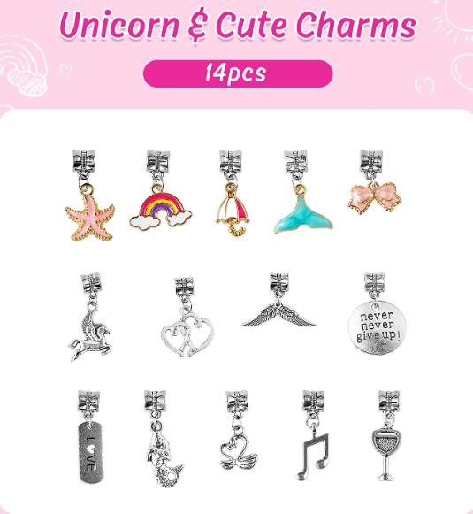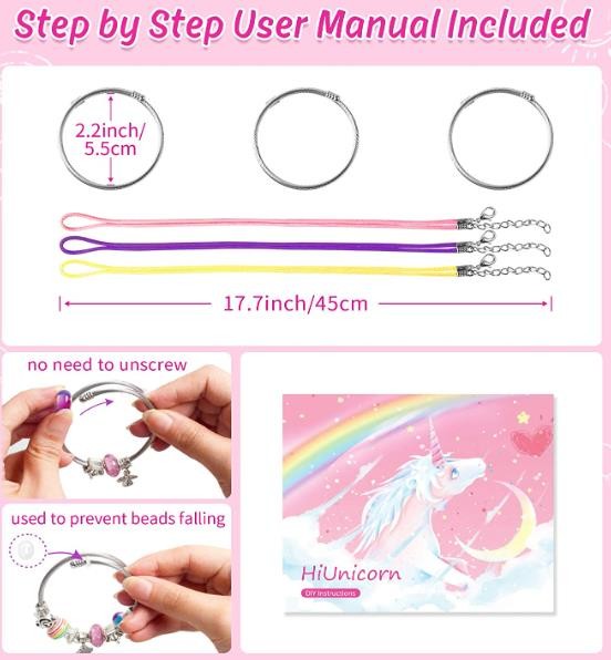 BEAUTIFUL DIY JEWELRY KIT WITH GIFTS BOX: DIY supplies crafts are helping children develop fine-motor, visual and tactile-sensory skills. Let your girl embark on a creative journey with HiUnicorn bracelets, necklaces, glitter charm beads, cute dangles. It's easy for girls in all ages to DIY independently with included DIY instruction.