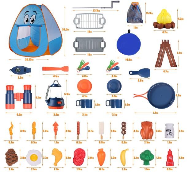• 【Pretend Camping Set for Kids】Simulate the real camping. It’s important to keep kids' minds and imaginations active. ULOVEME 34 pcs camping playsets for kids offers a good solution to encourage kids interest in adventure and outdoor activities. This kids camping kit includes all the necessaries for little explorers enjoy their camping adventure.