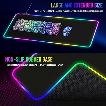 • 【15 RGB LIGHT MODES & LARGE SIZE】This extra-thick RGB gaming mouse pad features 11 static light modes and 4 dynamic modes, the light is bright but not deter from viewing the monitor. The size of 31.5x11.8 inches fit your mouse and keyboard perfectly and still have a large amount of movement space.