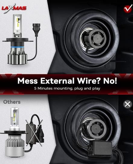 Laxmas H4 LED Bulbs - 5X Brighter Than Halogen