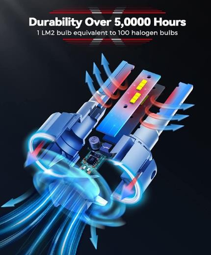 13,000rmp turbo fan + 6063 aluminum alloy shell + 8 heat dissipation ducts, increase 200% cooling efficiency, extending lm2 H4 bulb's lifespan up to 5 years