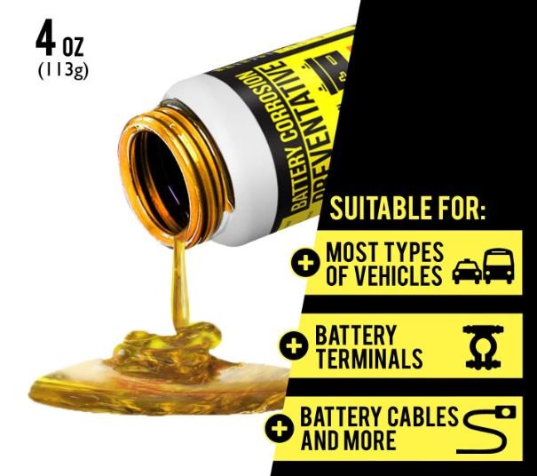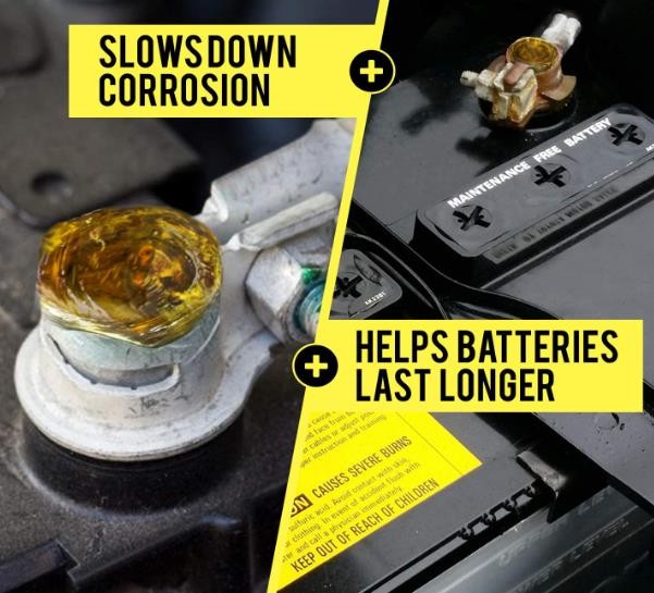 • Stop Battery Corrosion - Increase the life of your battery and make all surfaces impenetrable to corrosion-causing acid fumes. This protective grease additionally prevents wear, rust, and water corrosion.
