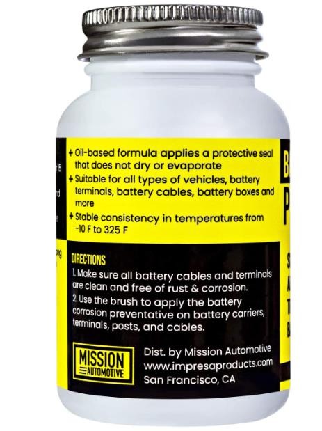 Mission Automotive 4 Oz Brush-On Oil-Based Battery Corrosion Preventative - Made in USA - Prevents Rust & Corrosion, Increases Life of Battery, Does Not Dry or Evaporate
