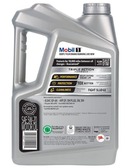 Keep Your Engine Running At Peak Efficiency While Improving Fuel Economy. . Engineered For Today’S Advanced And Hybrid Engines, Mobil 1 Advanced Fuel Economy Full-Synthetic Motor Oil 0W-20 Helps To Improve Fuel Economy* And Extend Engine Life For Vehicles Of All Ages. Mobil 1 Advanced Fuel Economy Utilizes Mobil 1’S Signature Triple Action Formula To Deliver Outstanding Engine Performance, Protection, And Cleanliness To Your Vehicle. Specialty Components In Synthetic Oil Reduce Friction, Helping To Prevent Deposits And Sludge Buildup To Keep Critical Engine Parts Clean And Protected For Up To 10,000 Miles Between Oil Changes. This Technologically Advanced Formulation Offers Outstanding Engine Efficiency, Wear Protection, Internal Engine Heat Protection (Up To 500 Degrees Fahrenheit), And Low-Temperature Protection (To -40 Degrees Fahrenheit)—Bringing Quick Cold-Weather Starting And Ultra-Fast Protection To Your Engine. Mobil 1 Advanced Fuel Economy Meets Ilsac Gf-6 Standards To Help Provide Low-Speed Pre-Ignition (Lspi) And Timing Chain Wear Protection While Keeping Your Engine Clean And Helping To Improve Your Fuel Economy. Available In 1-Qt. And 5-Qt. Bottles, Mobil 1 Advanced Fuel Economy Full-Synthetic Motor Oil 0W-20 Also Helps Control Oxidation To Prevent Oil Breakdown And Is Recommended By Exxonmobil For All Types Of Modern Vehicles, Including High-Performance, Turbo-Charged, And Supercharged Gasoline And Diesel Multi-Valve Fuel-Injected Engines Found In Passenger Cars, Suvs, Light Vans, And Light Trucks. Mobil 1 Is America’S #1 Selling Synthetic Motor Oil Brand At Retail, Trusted And Recommended By Car Builders And Experienced Mechanics, And Is The Official Motor Oil Of Nascar(R). (Potential Fuel Economy Improvement Obtained By Switching From Higher-Viscosity Oils To A Lower-Viscosity Grade. Actual Savings Are Dependent Upon Vehicle/Engine Type, Outside Temperature, Driving Conditions, And Your Current Engine Oil Viscosity. Protects For Up To 10,000 Miles Or 1 Year, Whichever Comes First