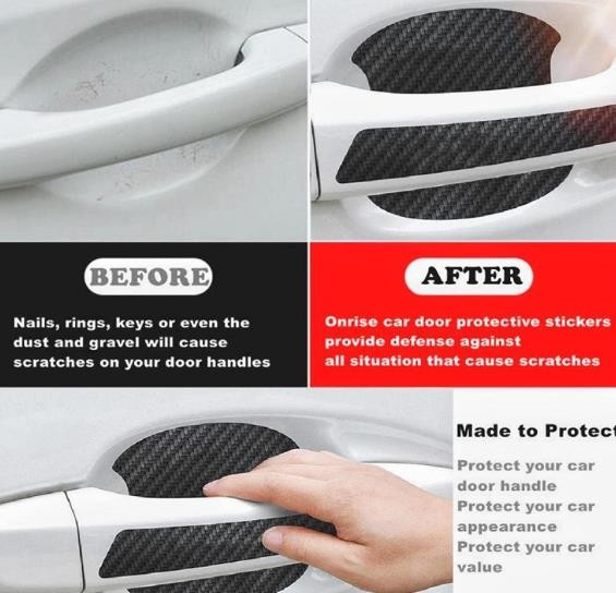 • 【Car Door Handle Scratch Protector】These door handle protectors for vehicles protect the door handles from scratches caused by many factors. Stickers are self-adhesive and strong enough to stay on your car for a long time. They can stay firmly in positions and will not leave any residue when tear off.