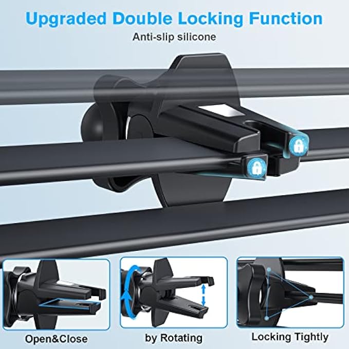 【Expert Holder for Smart Phones】: Phone holder for car passed a wide range of tests, Compatible with iPhone 7 7 Plus iPhone 6s Plus, 6s, 5s, 5c ,Samsung Galaxy S6, HTC,LG, Nexus, Nokia, GPS Device. Sturdy, cradle-less and attractive device holding system.Suitable for width size from 2.7inches to 4.8inches smart phone or electronic devices. 【2 in 1 Upgraded Phone Car Mount】Car phone holder mount allows you to install it on the dashboard or vent, dash mount phone holder uses a powerful 3-M viscous gel to provide strong suction on a smooth surface.Car Vent Phone Mount with Non-blocking Function,no blocking air flow,cell phone holder car could hold your phone securely on your car air vent, which will create a safe and comfortable driving environment for driver. 【Adjustable Clip&Great Compatibility】:Cellphone holder for car mounts with adjustable clamp arms and feet.This car phone holder mount feet can adjust arbitrary without covering the mobile phone's buttons,which will fits for more phones.ON/OFF Buttons can fix the feet of phone holder car at any time,avoiding the imbalance between the bracket and the mobile phone clip, which is top-heavy.Upgraded air vent clip is compatible with 99% of horizontal and vertical vents,which solves the common problems of poor compatibility and cradle easy falling off on the market.Note: Round vents may not fit. 【Stability & Durability】The clamp arms and feet of phone car mount uses thick soft silicone rubber,it will not hurt mobile phone.Especially the non-slip silicone strips on the arms can wrap the phone firmly, even on bumpy, cracks and pothole roads, the phone can stay in place and never fall. 【360 Degree Rotation】:Cell phone holder car ball joint is 360 degree free rotation, which can switch horizontal and vertical angles at will, you can enjoy easy navigating, charging, calling, talking or listening to music on this car mount.