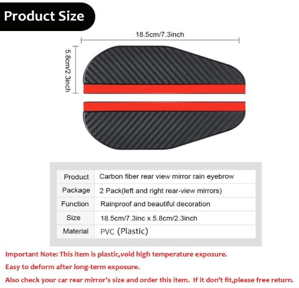 Pincuttee Car Side Mirror Rain Guard - 2 PCS Carbon Fiber Auto Rear View Mirror Visor Rain Guard for Most Car, Truck, Pickup Trucks and SUV