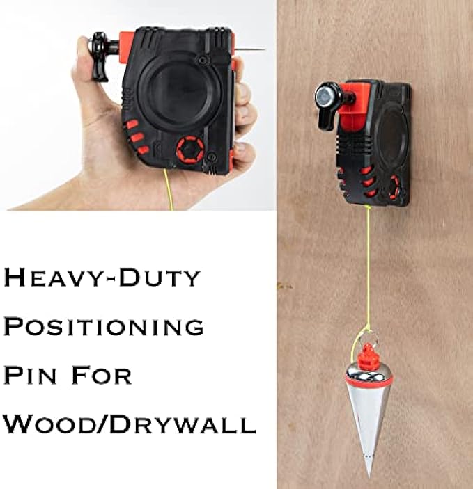 [Self-retracting cord w/ adjustable resistance] Universal plum bob setter with 12ft self-retracting nylon cord for easy storage, adjustable multil-level reel resistance.