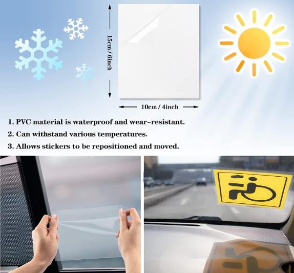 【No Adhesive】 The static cling window films adheres tightly to your windows without adhesive, so it doesn't leave any residue on your windows. It help you easily apply, peel and transfer car permit stickers. Allows your stickers to be repositioned, removed and moved between cars any number of times without leaving adhesive residue or losing adhesion.