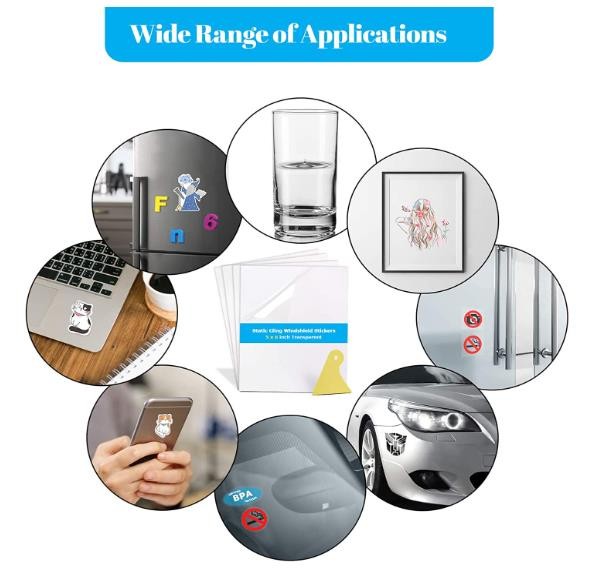 【Car Static Cling Film】 Use this clear car static sticker to avoid stickers leaving any sticker marks on your car. This sticker uses the principle of static electricity and is directly attached to the glass surface without the use of adhesives. With this sticker, your sticker can be easily peeled off the windshield and reused without leaving a trace.