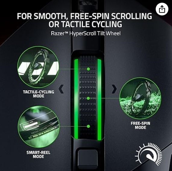 HYPERSCROLL TILT WHEEL — Speed through content with a scroll wheel that free-spins until its stopped or switch to tactile mode for more precision and satisfying feedback that’s ideal for cycling through weapons or skills