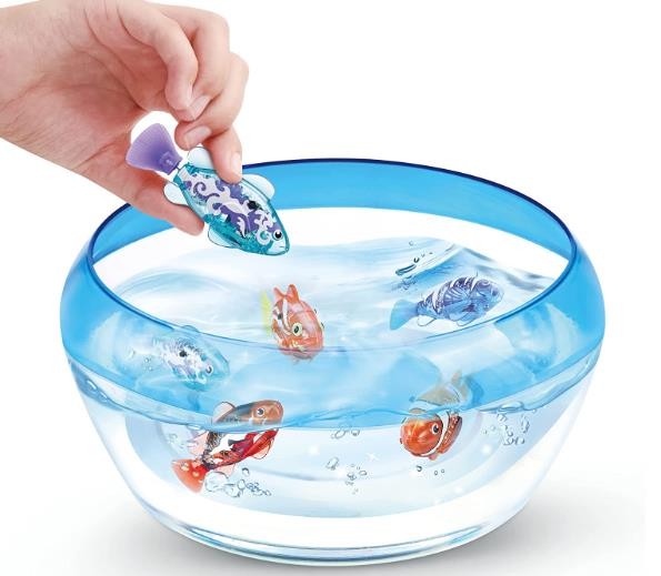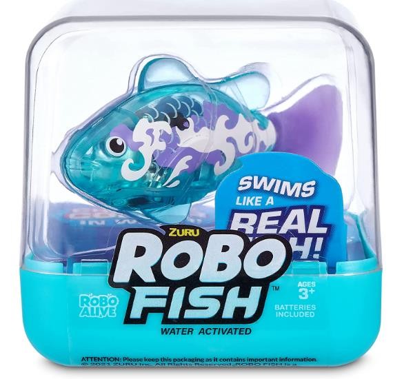 The new ZURU Robo Fish by Robo Alive are the most iconic real- life robotic swimming pets ever! Drop them in water and watch them swim in 5 different directions and dive up to 6ft as Robo Fish’s water activated technology bring these fish to life like magic! There are 6 colors to collect, and they even have water activated color change! Watch their scales change color before your eyes, then pull your fish out of the water, gently pressing your palm onto their scales and they change back to their original color. These realistic fish make for the perfect pet or prank toy!