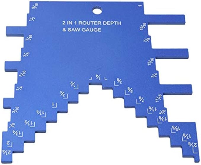 Setup router blades: from 1/8" through 1" in increments of 1/16". Our mini step depth gauge will make your process of setting up the saw blade quickly and easily.