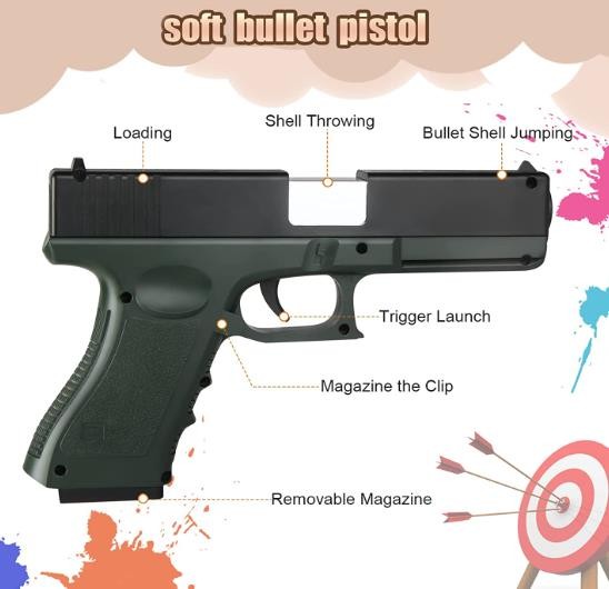 • Safe and Soft Bullets: This toy gun loaded with soft foam bullets that are made of High-quality EVA material, not cause harm to the human body and children can shoot it safely.