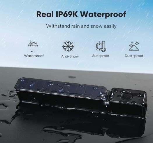 • 【Rear Camera with IP69K Waterproof Standard】 REAL IP69K rate certified (Certificate Report No.: BLA-EMC-202102-A11) with unique enhanced 4 waterproof processes: PCB-Coating, sealing adhesive, filled up with potting, and specially-designed waterproof structure ensures superb waterproof performance. Compared with traditional rear/front cameras which got only potting material inside, you can believe Solar 3 here!