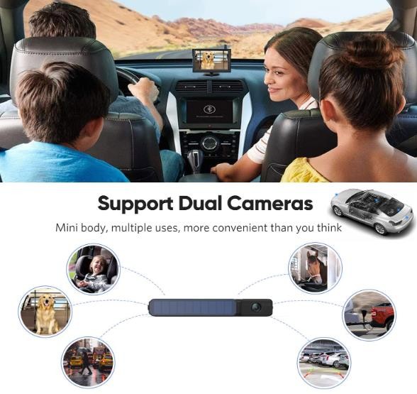 • 【3 Mins DIY Wireless backup Camera Installation】Zero wiring, zero drilling. Powered by a built-in battery and sunshine. No need to wire to the reverse light. You don't need to pay $200 for professional installation. Everyone can install Solar 3 wireless vehicles backup camera in minutes is so cool!
