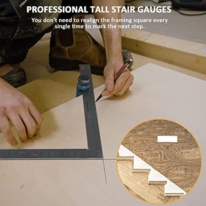 • ?[ALUMINUM ALLOY] Heyseri Stair Gauges are made of high-quality anodized aluminum alloy with stainless steel Thumbscrew, which makes them smooth and rustproof, stable, and durable.